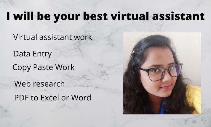 HiI have more than 3 years of experience in virtual assistant jobs . If you're looking for a virtual assistant,you've come to the right place. I will do 2 hour of work. I can help you with your work. I can be your virtual assistant. I assure you that you will be satisfied with my service.My Services: