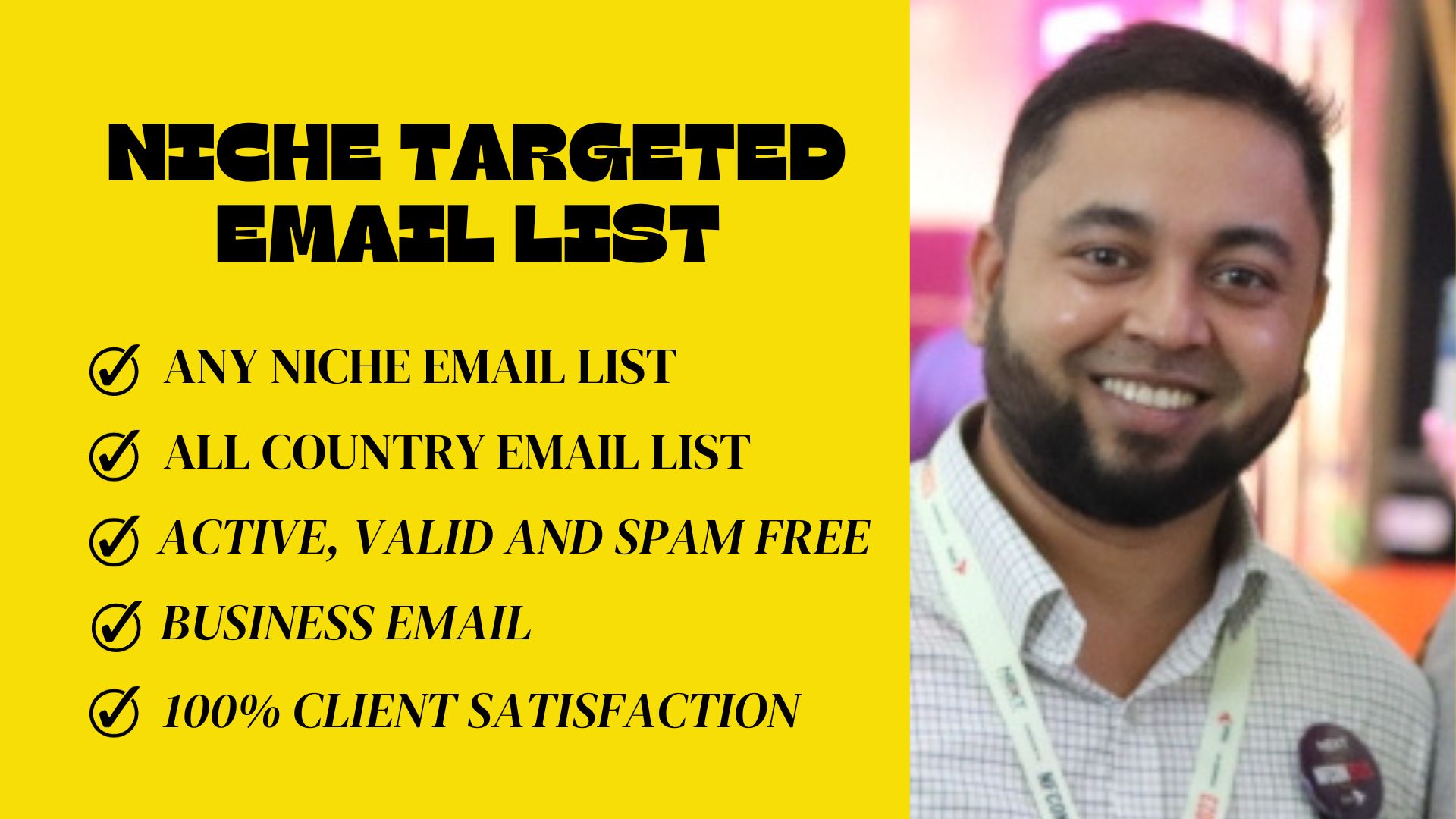 You need a professional service to generate B2B leads/bulk emails, email list building, niche targeted email list and email marketing expert. If you are looking to grow your business with a targeted email list audience, get high conversion rates, and get a high ROI.