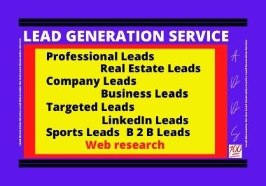 "I will provide targeted lead generation of LinkedIn lead, business / b2b lead, company lead, sports lead, real estate lead, university lead, medical lead, email listing, verified email, data mining, data scraping, web-research."
