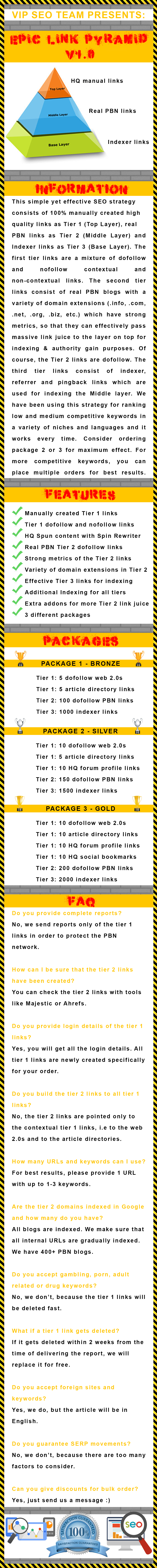GET TO THE TOP OF THE SERPs WITH THIS EFFECTIVE LINK BUILDING STRATEGY! ORDER TODAY! Available packages: BRONZE PACKAGE: $57 USD SILVER PACKAGE: $57 USD We will let you know when the gold package will be available for sale.