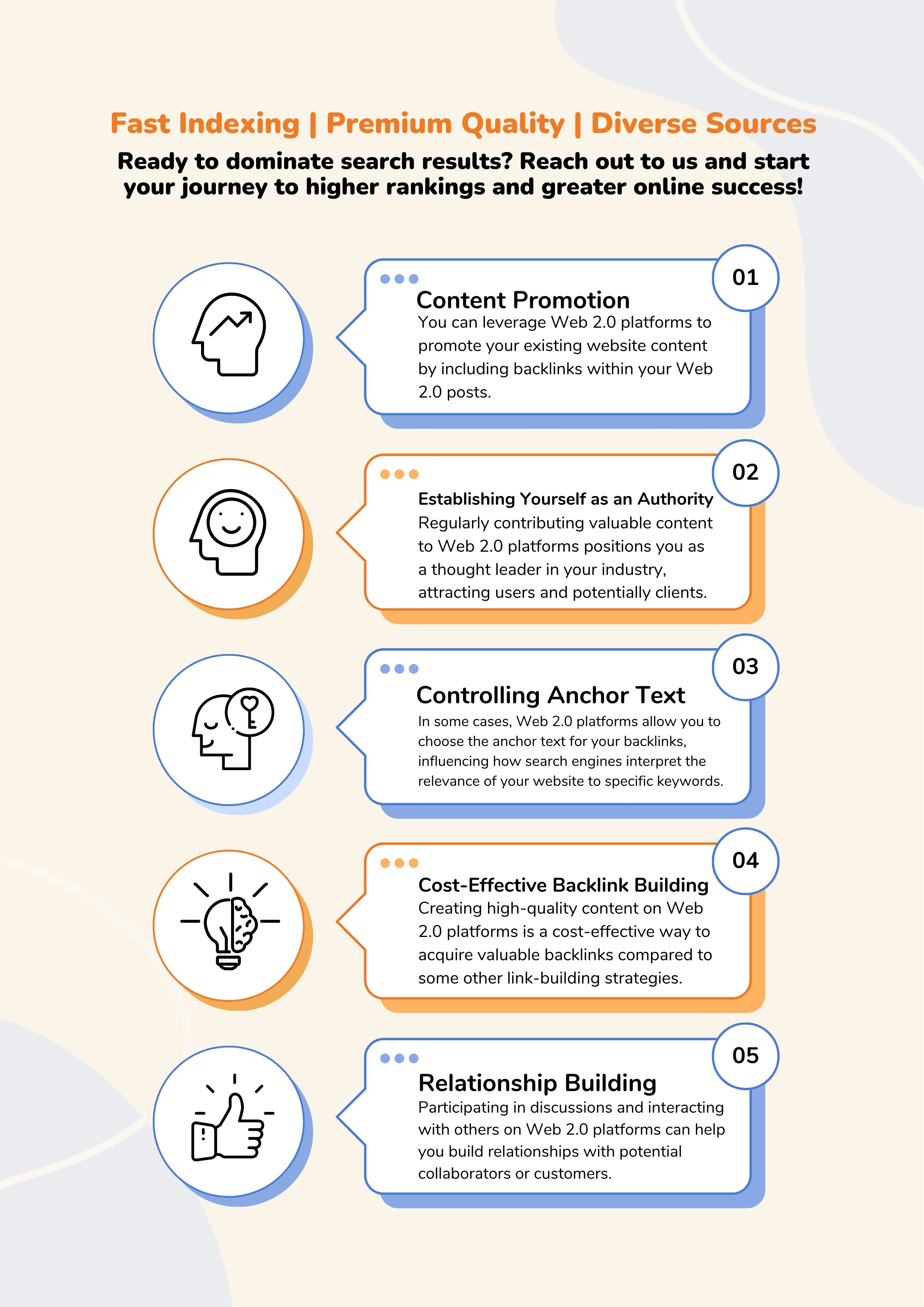 Top-tier links from reputable sources, boosting your site's credibility and visibility for maximum impact.