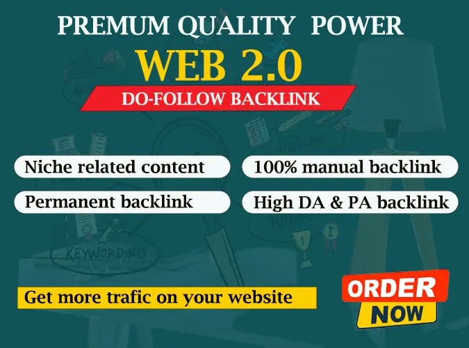 I will create manually 30 Dofollow Web 2.0 Backlinks to rank your website.Looking for Quality backlinks? I'm here for link building of your website with my trusted Authority contextual backlinks which will boost your website ranking on Google. These are High authority seo dofollow manual backlinks with low spam for better google ranking.Contextual backlinks which are from premium sites has High DA recommended for high Competition keywords.