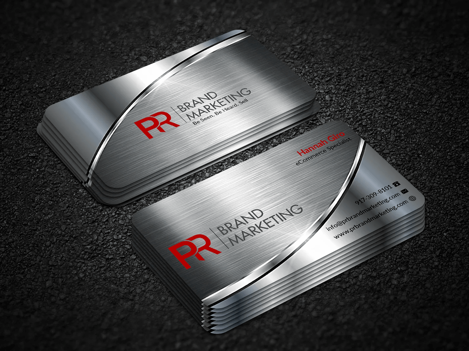 - Multiple double-sided business card design concepts.