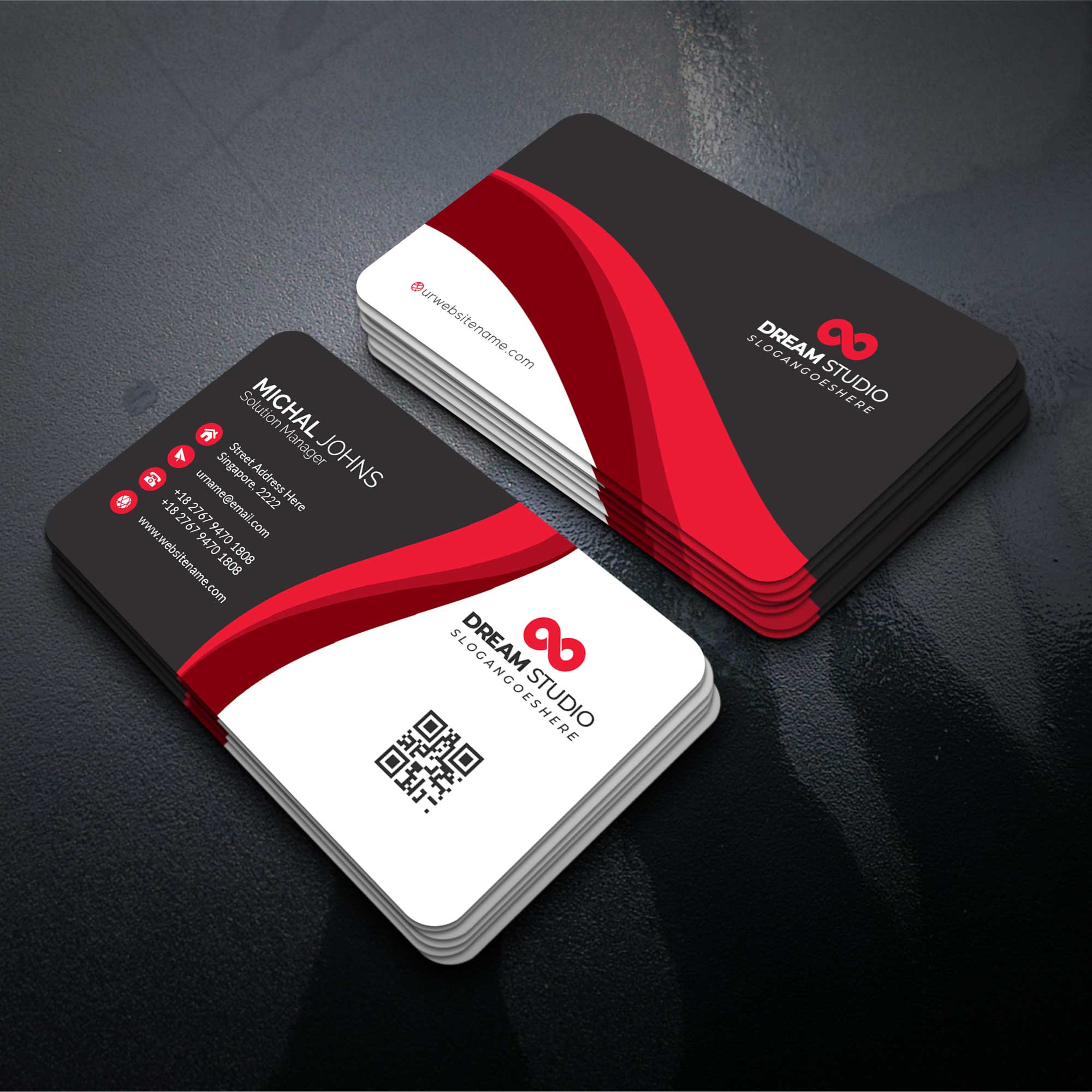You have to provide company name, your name, designation, email, phone number(s), address, web/social links Logo (PNG/AI/EPS). If you have any choices for the design and color combination, you can provide me that also.