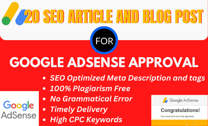 I will also help you create a AdSense friendly articles that will help your site get Google AdSense approval very quick. A lot of bloggers have common problems of Adsense rejection because they don't understand what it takes to write a content the Google algorithm recognize as a quality content.
