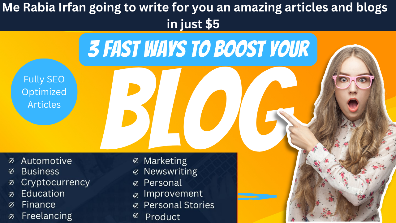 I'll create SEO optimized articles, posts and a blog on any topic.