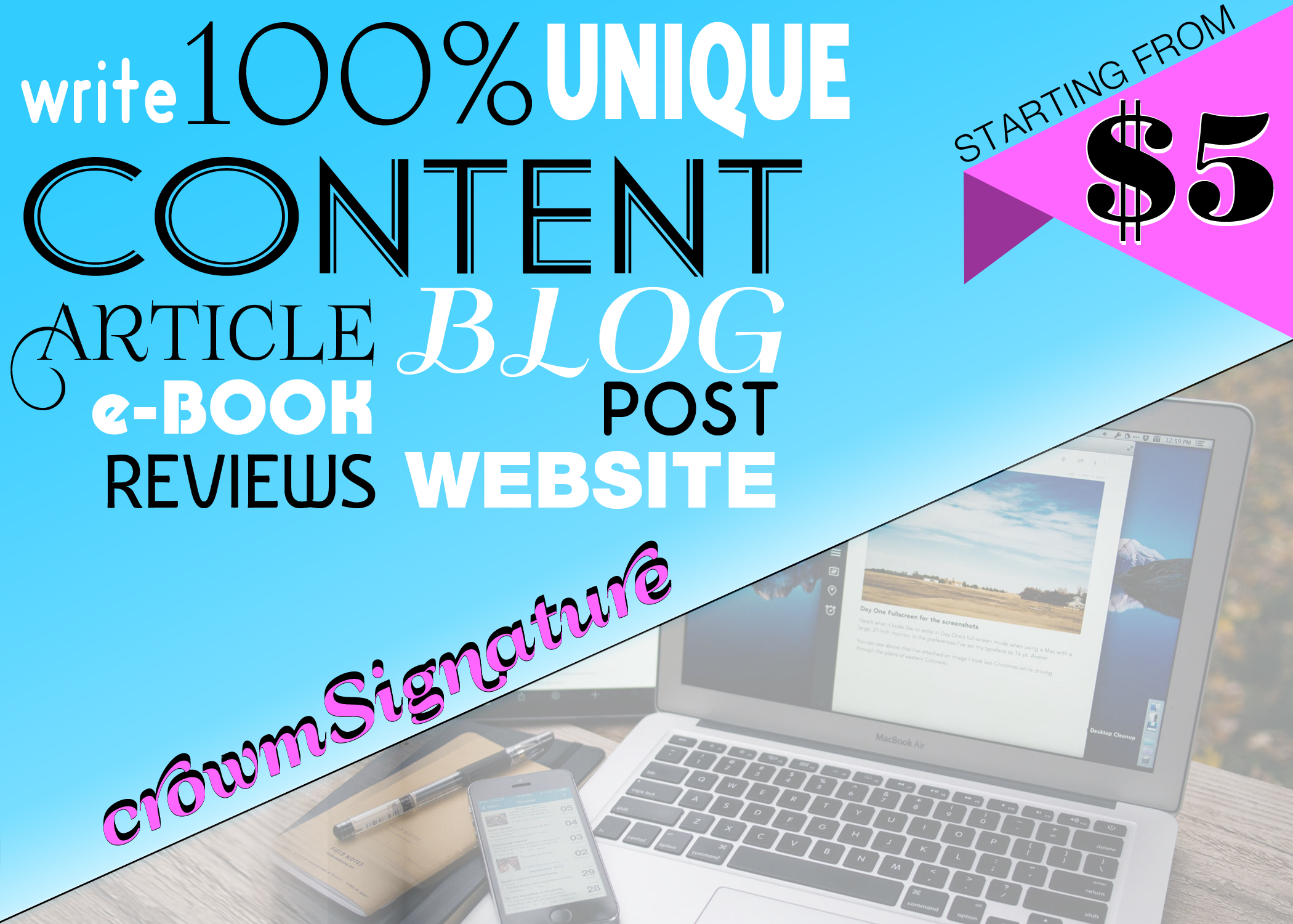 crownSigns is a certified & verified TEAM of experts from diverse fields, specialized in ( Graphic Design, Digital Marketing, Programming, SEO, Traffic, Ranking, and all Writing works and more.) #Quality_Service #Satisfaction Guaranteed @Best Price