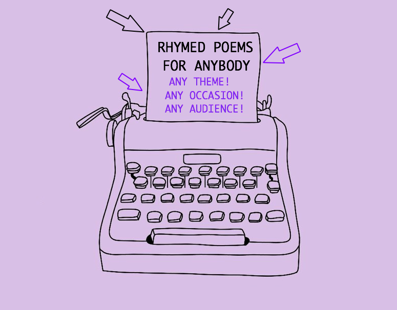 With the greatest pleasure, I will write anything you like for anybody and any occasion. And it will rhyme beautifully! It can be funny, romantic, catchy, thoughtful. It can be anything you like!