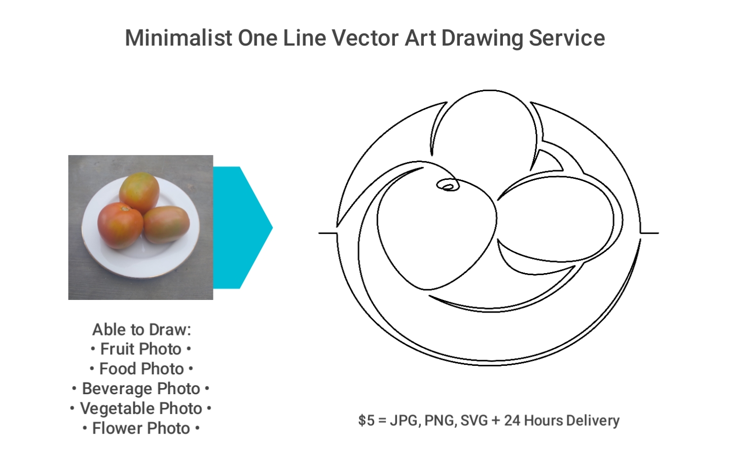 Minimalist One Line Vector Art Drawing Service: $15 for 1 Photo + 24 hours delivery. $15 for 1 Photo + 24 hours delivery (Color). You will get High Quality: (+/- 6000 pixels).