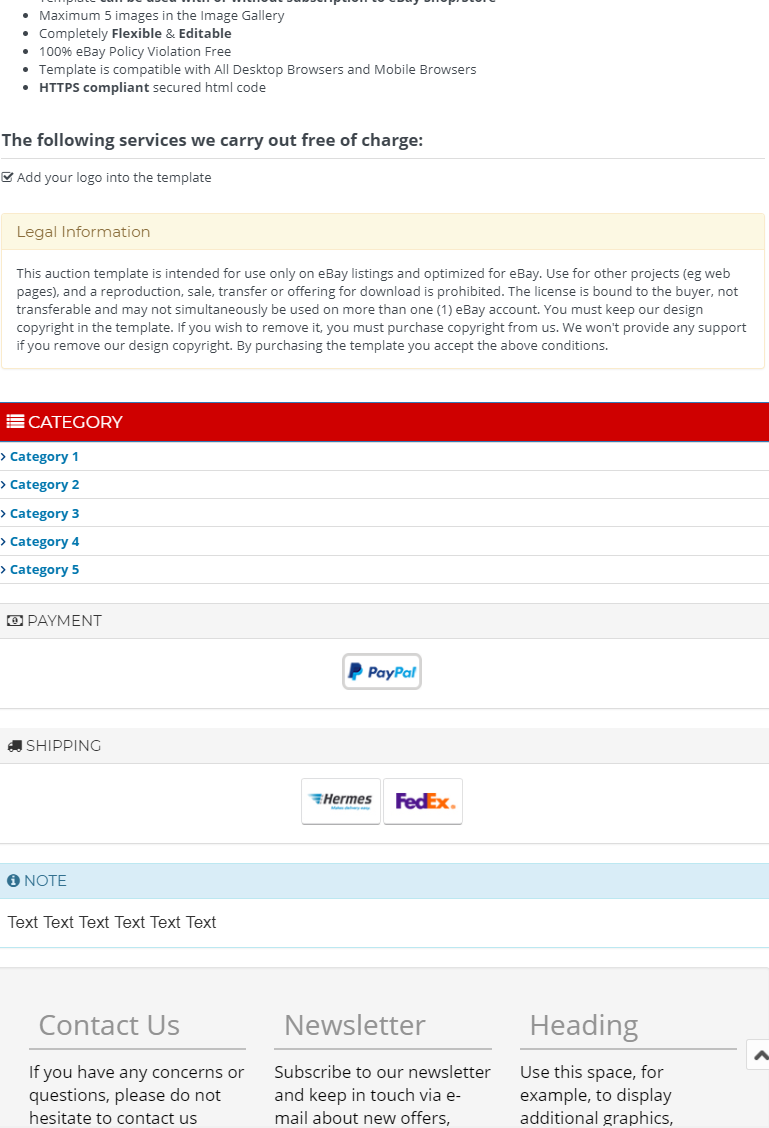 If you have any questions or doubts about this template meets or complies with the new eBay guidelines, please do not hesitate to contact us.