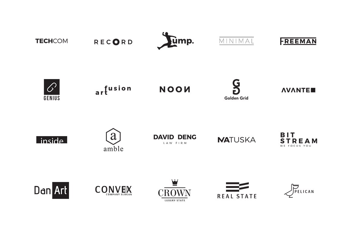 250 Minimal Logos Template Product Features 250 Logos in AI Format 250 Logos in EPS Format 250 Logos in PSD format Only free fonts used Well organized Easy to use No skills required