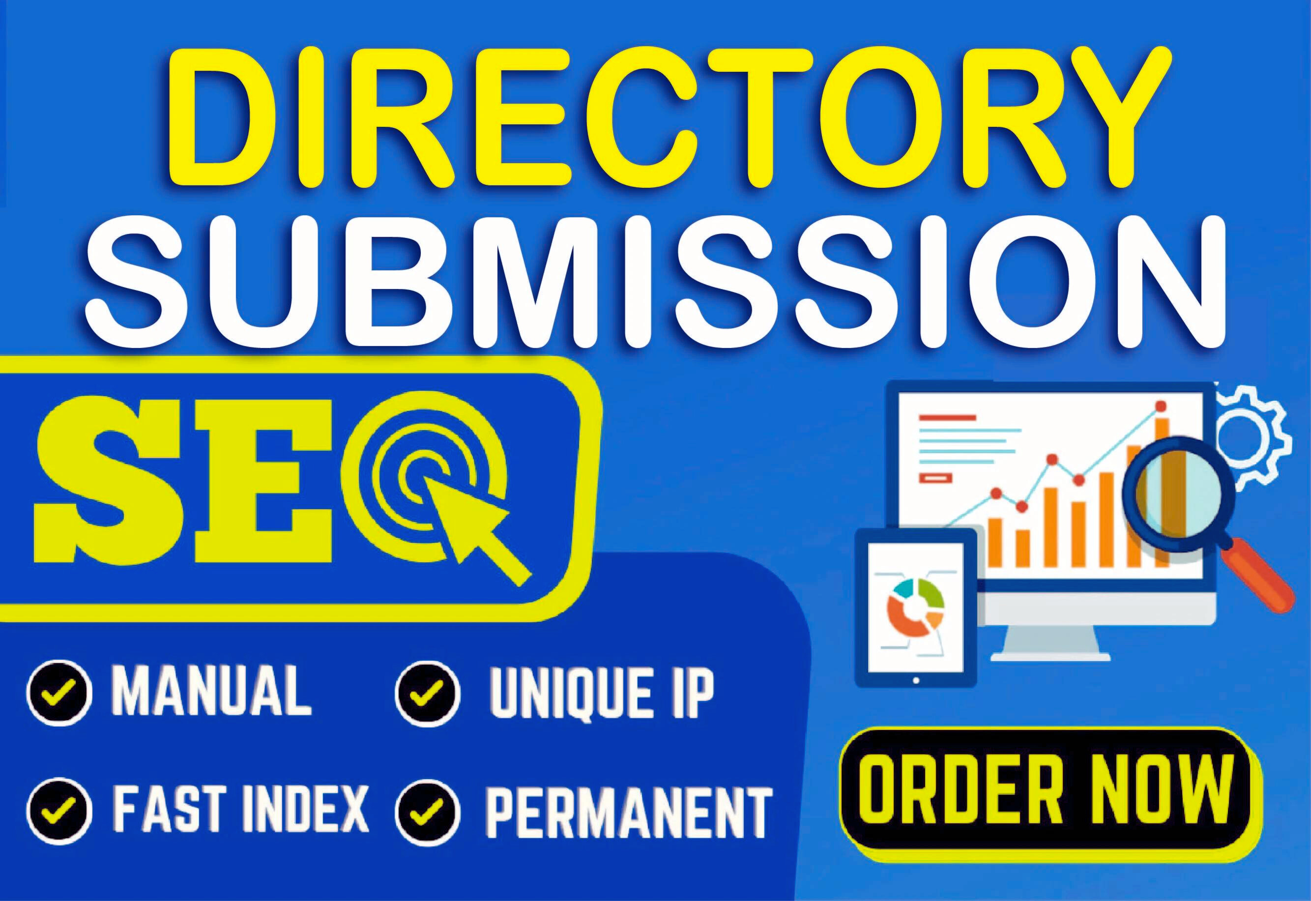 Hi, I AM MrAlexSEO I Will Manually Submit Your Business Or Website To The DIRECTORY SUBMISSION. It Is One Of The Most Powerful SEO Backlink To Increase Website Backlink, Traffic, And Ranking. I Will Provide You Clear And Transparent Excel Job Report. Where Other Sellers Can't Provide You With A live Link To The DIRECTORY SUBMISSION, I'M Providing 100% Live Link With Guarantee. These Are High-Authority SEO Manual Backlink For Good Google Ranking And Help Customers Find Your Services Get Trusted Backlink That Will Be Treasured By Google.