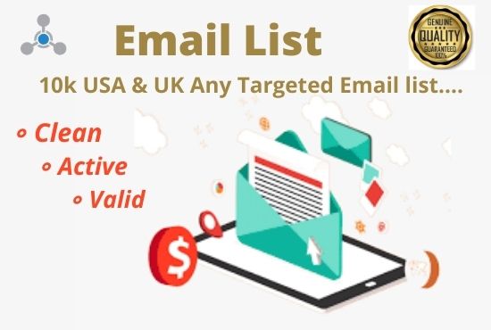 I will provide you targeting email lists. That email list will active, clean, Verified, with no duplication.