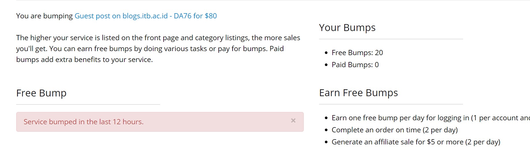 Scroll down on your service - click bump your service