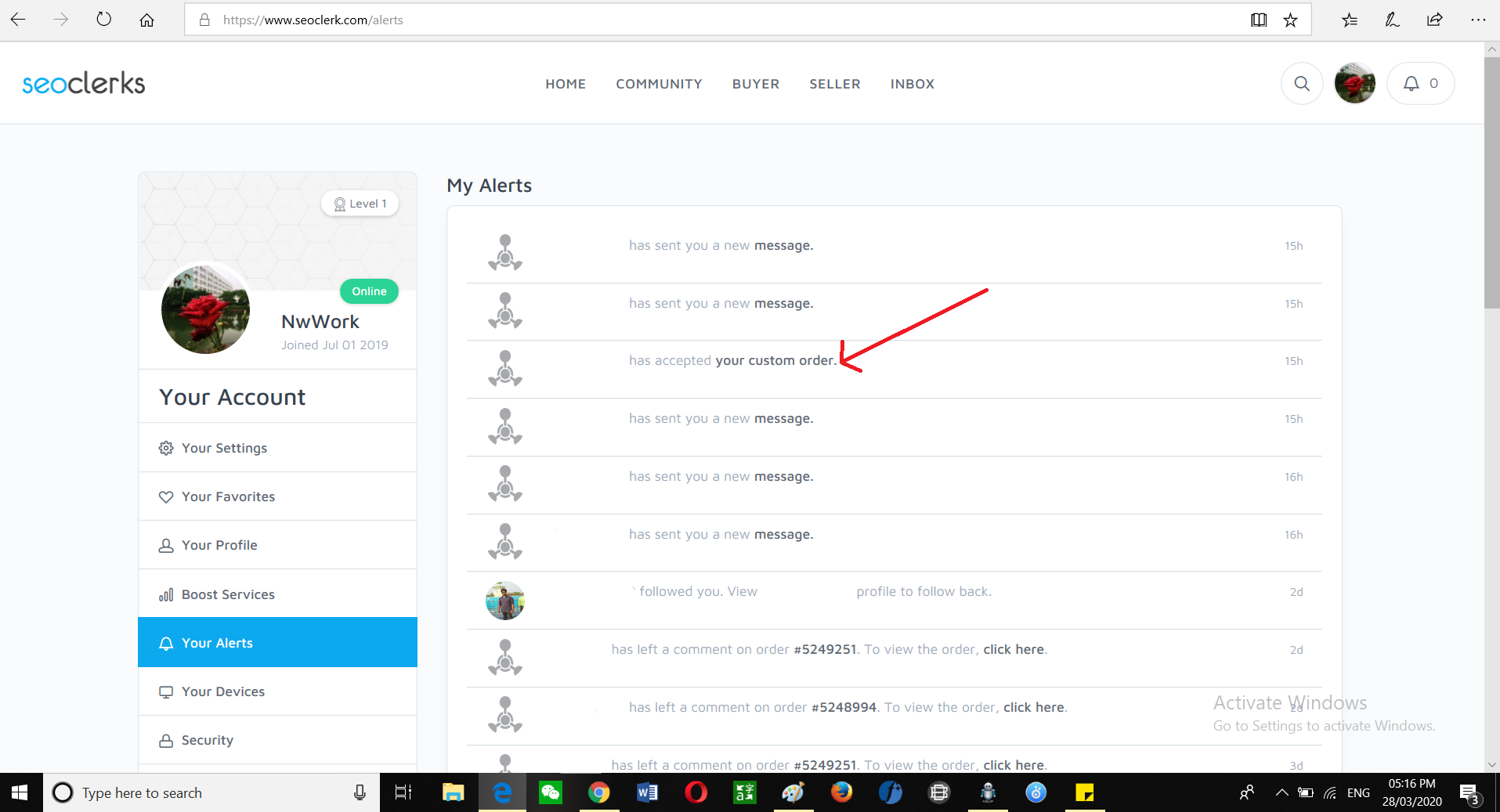 If Yes, You need to Accept the Custom Request from Buyer in the Message, Then after Deal, You can check in your "Sales"