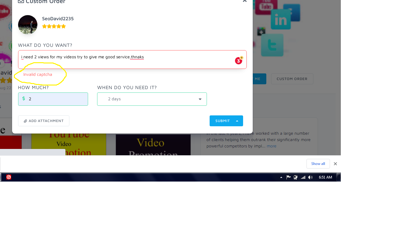 i cant create custom oder