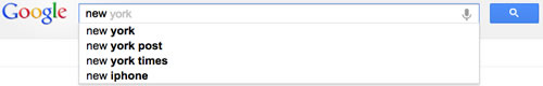 As you type within the search box on Google, Auto complete helps you find information quickly by displaying searches that might be similar to the one you're typing. For example, as you start to type [ new York ], you may be able to pick searches for other New York-related search queries.