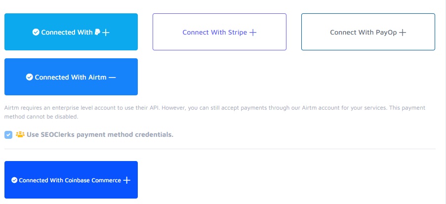 settings - PAYMENTS - add payment methods + - Most Common - connected with airtm +