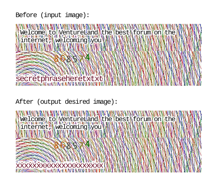 Need a Node.js script written that accepts an image, detects a textual phrase within that image, and replace it with other text (to be more percise, print text over it).