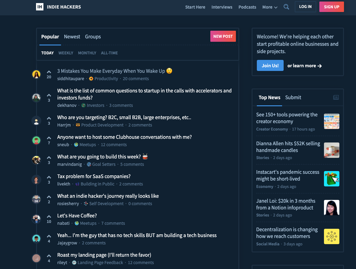 Hello, I am looking for someone to create a script/site similar to ( https://www.indiehackers.com/ ) but we do not need all the features at this time. Required