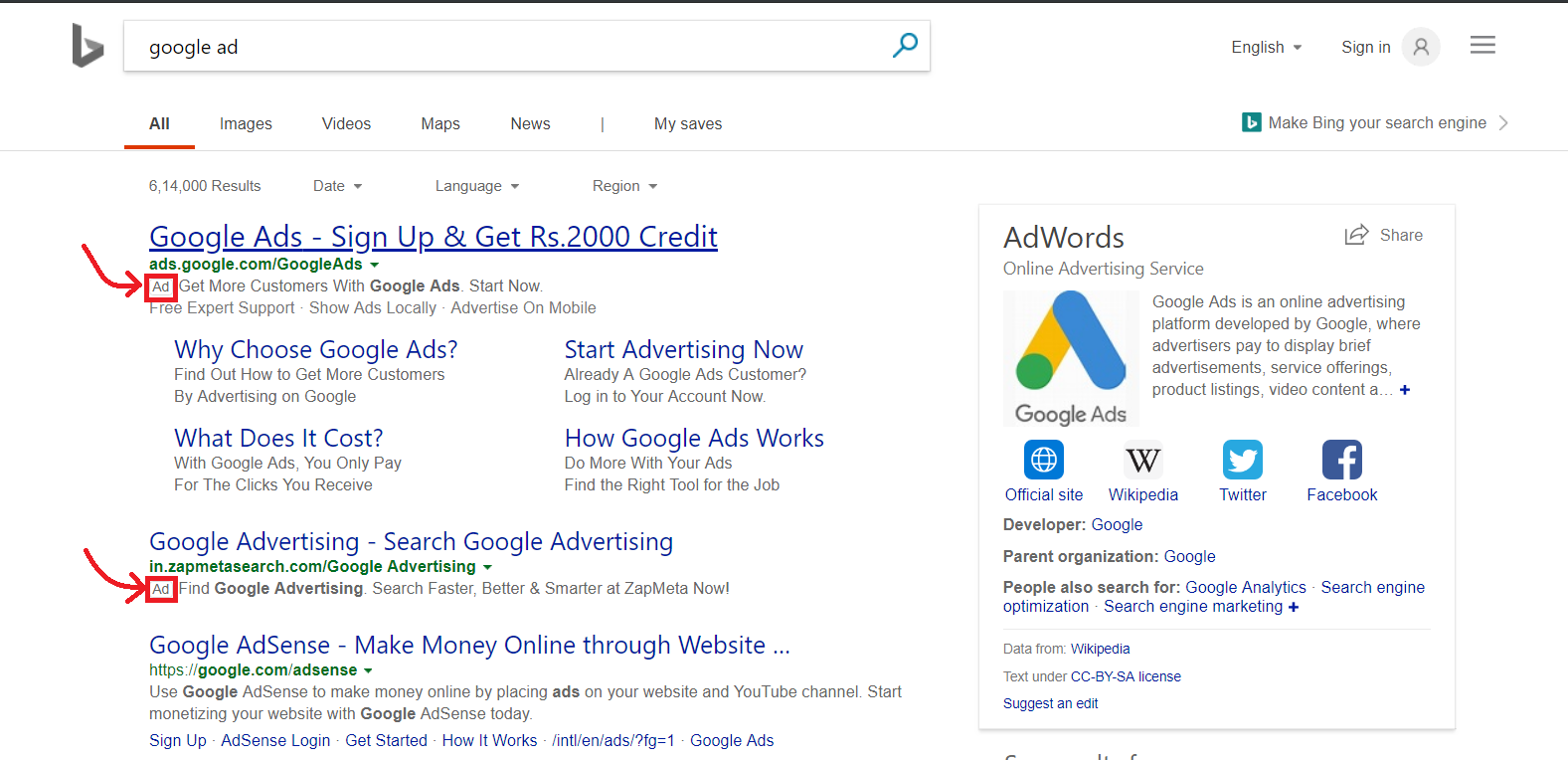 I want to see my advertisement on bing just like this :