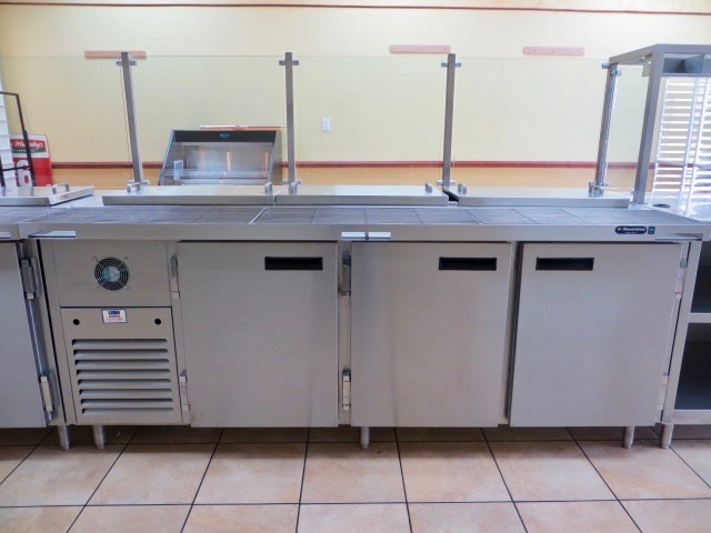 Ad Description: Manitowoc 9x18 Walk-In Cooler with Refrigeration Package, Globe SP62P 60 Qt. Commercial Planetary Pizza Mixer with Power Bowl Lift, Somerset Double Pass Through Commercial Dough Sheeter, True GDM-72F Black Three Door Merchandiser Freezer, Wasserstrom 86" Custom Three Door Refrigerated Pizza Prep Makelines, Stainless Steel Work/Wrap Station with Wood Paneling Accents, Randell Safe Storage Cash Wrap Station, True GDM-49 Black Two Door Merchandiser Refrigerator, True GDM-49F Black Two Door Merchandiser Freezer, Randell Black Grab N Go Merchandiser Refrigerated Display Case, Commercial Three Compartment Sink, Water Heater, Commercial One Bay Sink, Advance Tabco 7-PS-62 Hands Free Hand Sinks with Knee Operated Valve, NCR P1530 Touch Screen POS Terminals with Credit Card Swipe and Verifone PINpads, NCR 1672 Back Office Server with 17" LCD Display, Epson TM T88V Thermal Receipt Printers, Cash Drawers, Corporate Safe Company Safe with Drop Drawers, Swann 4 Camera Security System 1TB DVR, New Black Aprons with Pocket, Mobile Stainless Steel Work Table with Locking Casters, Neon TAKE 'N' BAKE PIZZA SIGN, Bowl Truck for 60-qt. Bowl, Wisco 560D Deluxe Pizza Oven, Kenmore 27" Laundry Center with White Electric Washer and Dryer, Win-Holt Double Column Six Door Locker, Papa Murphy's LED Illuminated Outdoor Sign, Kelmax 20-Pan Sheet Pan Racks, Win-Holt 18 x 26" Bagel Boards Heavy Duty, NSF Chrome Plated Wire Pizza Dough Proofing Boxes, Gray Dough Proofing Box Dolly, Nemco Green Onion Slicer, Stainless Steel Heavy Duty Love Heart Pizza Cutters, Anchor Speed Wrap Film Dispensers, Yamato 50 lb. Temperature Compensated Rotating Dial Mechanical Scale, Edlund DOU-2 Deluxe 32 oz. Portion Scale, Vollrath 15000 Redco InstaCut 3.5 Fruit and Vegetable Dicer, Blockbuster Cheese Cutter with Stainless Steel Cutting Wire, Shredder Disc Holder, "B" BEATER Aluminum Flat Beater, 60-Qt. Bowl Truck Dolly, Embroidered Logo Aprons and Polos, Wall Shelves, Pizza Pan Racks, Metro Shelving Units, Antimicrobial Shelving, Dunnage Racks, NEW Cambro Indestructible Plastic Tumblers, Microwaves, Track Lighting, Waiting Bench and More! WE SHIP NATIONWIDE. Call or TEXT 817-888-8715!