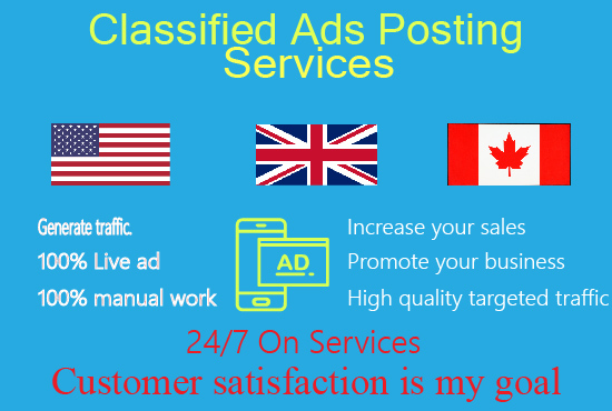 I will post 100+ ads in USA top classified ad posting sites