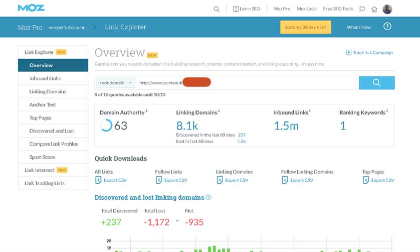 | No. | Domain | MOZ | PA | CF | TF |