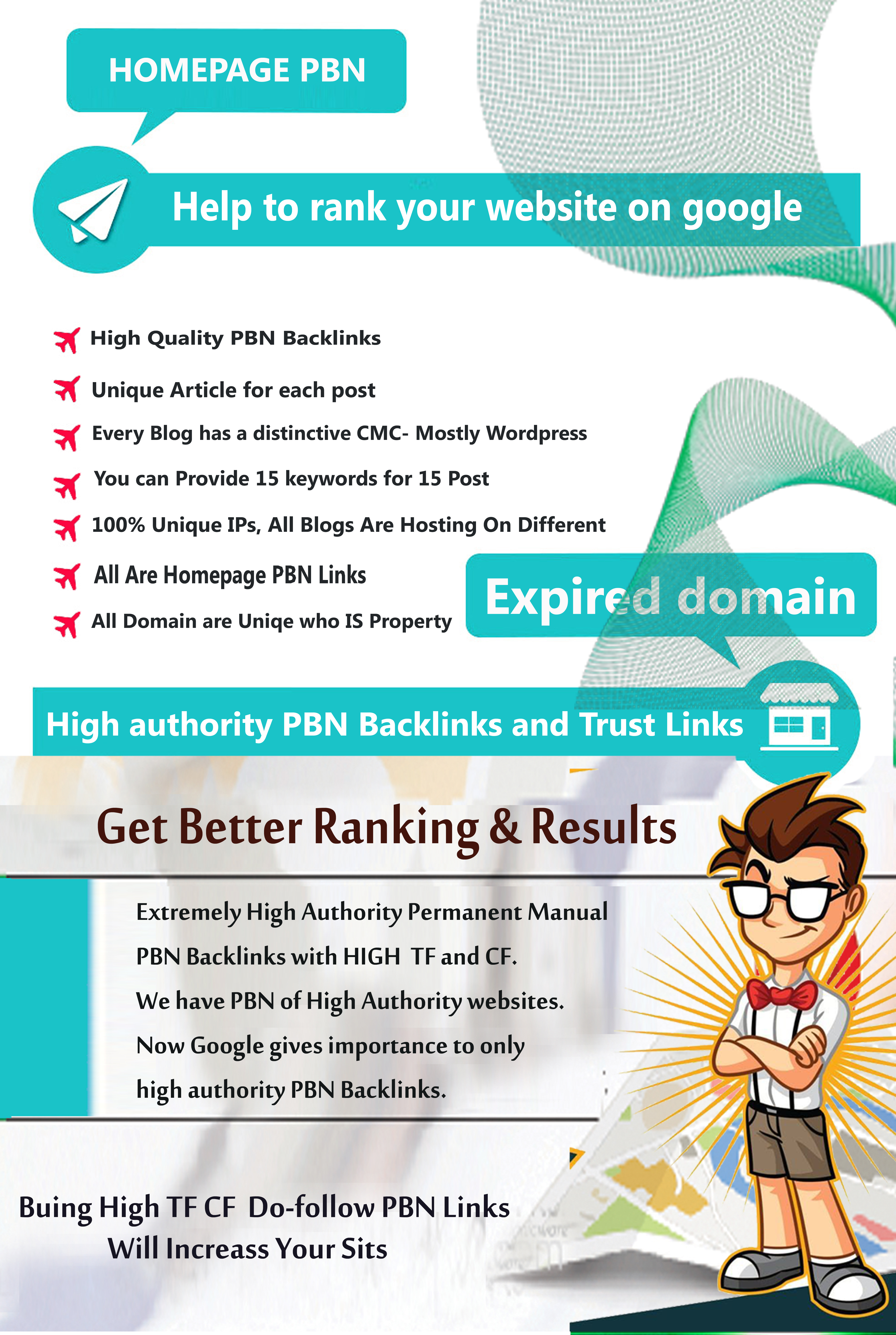 We have PBN of High Authority websites. Now Google gives importance to only high authority PBN Backlinks. We have helped many to achieve their rankings. High-Quality Backlink is better than thousands of low-quality PBN Links