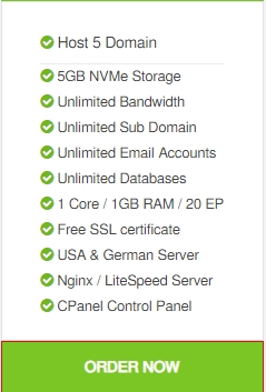 High quality Blazing fast NVMe SSD hosting for 1 year