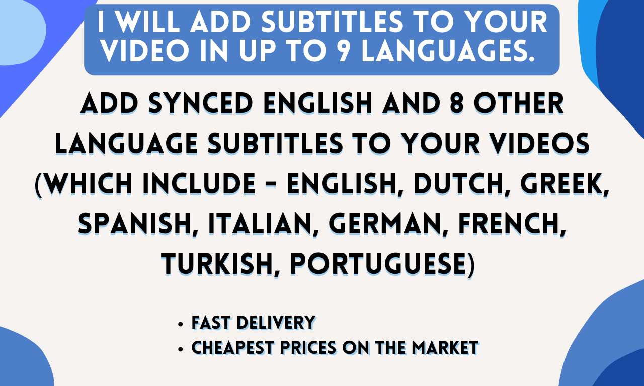 Enhance your video's reach and accessibility with professional subtitle services! I'm an expert in adding subtitles and closed captions to videos in English, Dutch, Greek, Spanish, Italian, German, French, Turkish, and Portuguese.