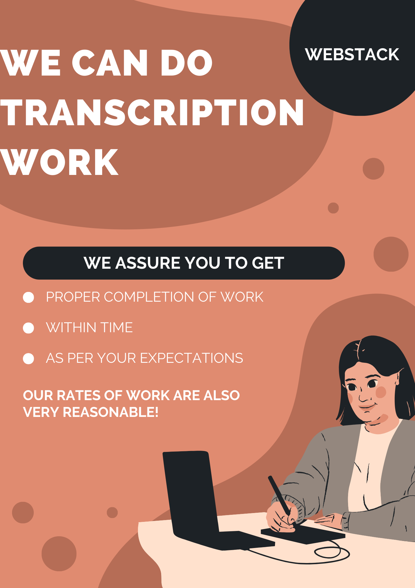 Experience unparalleled accuracy and efficiency with our transcription service! ????️ Our skilled professionals transform audio into flawless text, ensuring every detail is captured. Whether it's interviews, podcasts, or meetings, we deliver prompt, reliable, and confidential transcription. Embrace precision, entrust your audio to us, and watch your words come to life effortlessly!