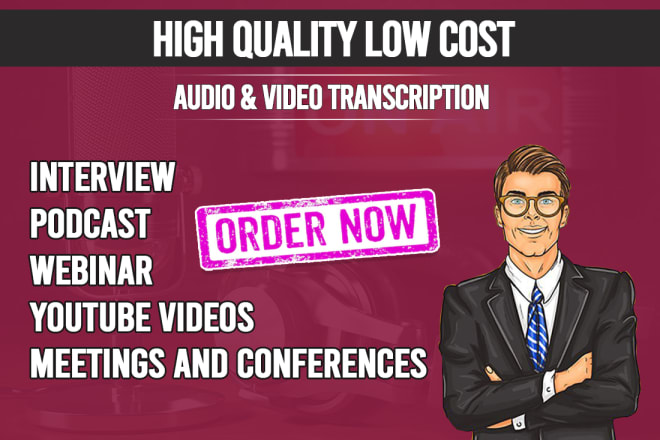 FLAWLESS, ACCURATE, PROFESSIONAL TRANSCRIPTION SERVICESFrequently recommended. Broadly referred. Highly praised!Get a FLAWLESS and HIGH QUALITY TRANSCRIPTION for your Audio or Video files in 24 hours or less.Long audio or video?Get a quote. Any length. Any deadline (Request Custom offer)I shall make an audio proof of your document and Google search for names, acronyms, terminologies, corporate jargon. I will also ensure every transcription goes through the following key processes:Typing, and PunctuationStructuring, and EditingProofreading, and Quality ChecksTimestamps of unclear spoken word or a phrase in the format [inaudible mm:ss] e.g [inaudible 12:23]Clean verbatim (included)Exact verbatim including ["like" "um" "er" "y'know" "so"]Unlimited revisions Guaranteed deadlines!I have transcribed within most industries:MEDICAL TRANSCRIPTIONTECHNOLOGICALACADEMICLECTURESBUSINESSGROUPSLEGALPodcastsmore...***PLEASE ENSURE THE AUDIO QUALITY IS CRISPY CLEAR BEFORE ORDERING. IF IT IS NOT, YOU CAN SEND ME A MESSAGE WITH A SAMPLE OF THE AUDIO/VIDEO TO ANALYZE.Got a job? ORDER NOW!