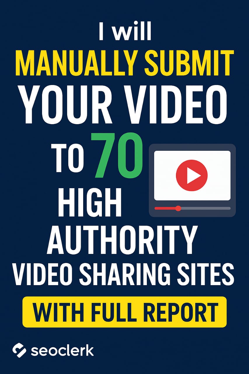 I will manually submit your video to 70+ High Authority Video Sharing Sites including platforms like: