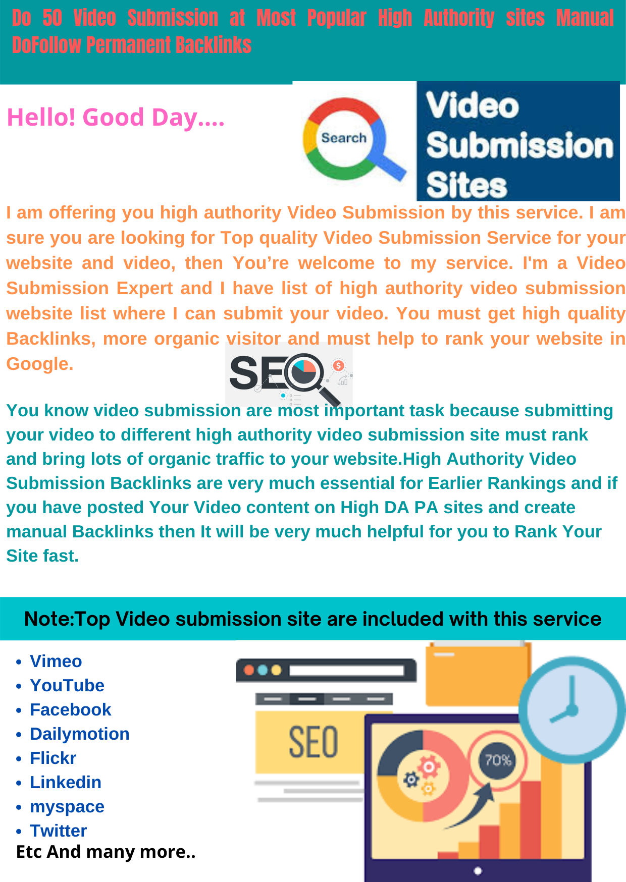 Live 50 Video Submission Backlinks Link building High Authority Permanent Dofollow