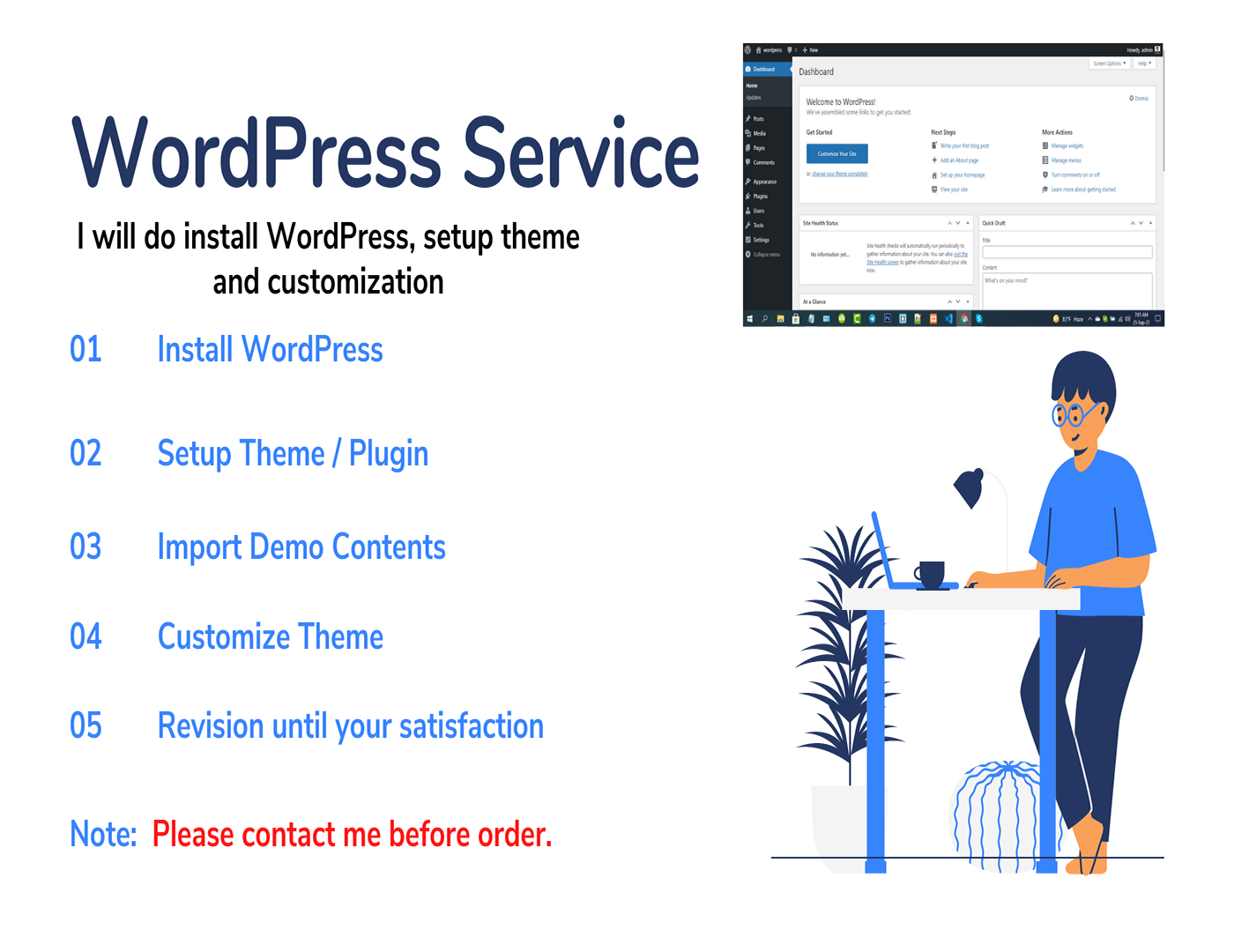 I am offering my services on short notice. Relevant Skills and If you are looking for an expert developer to setup WordPress or to develop your current website, then you are in right place. Just contact me to get the best deal at a reasonable price.