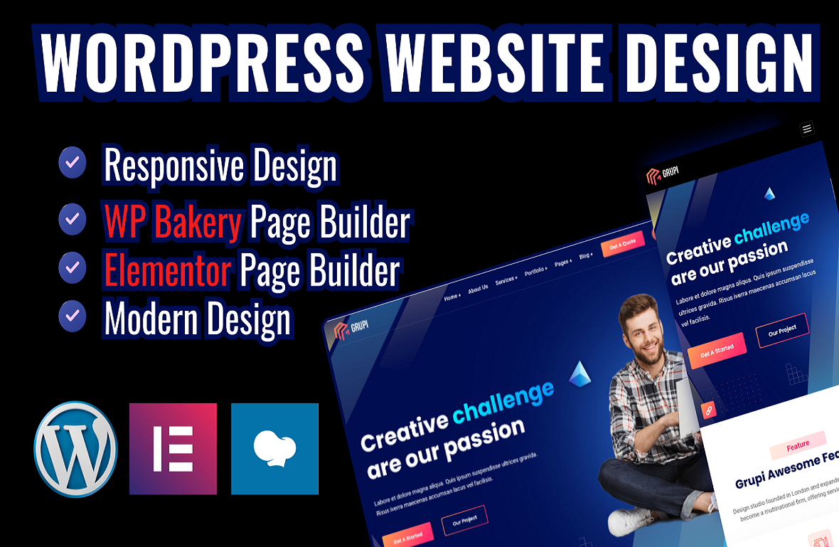 I will do Modern & Professional Responsive WordPress website design for your Business.