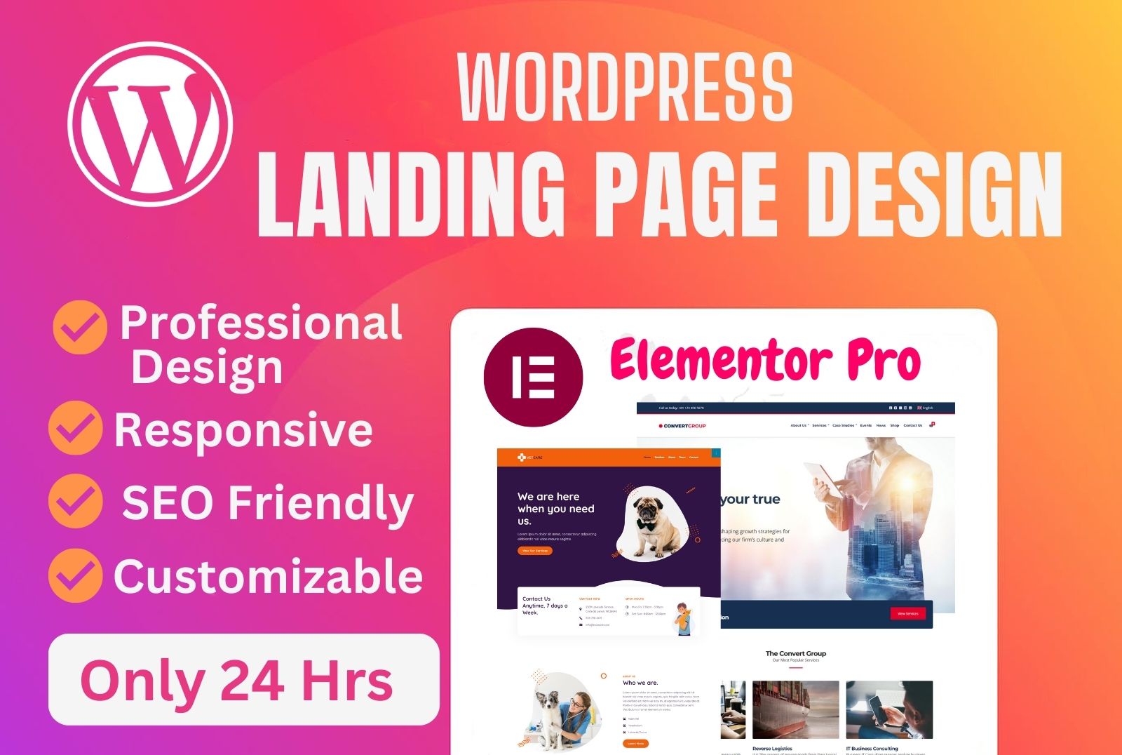 Responsive Wordpress Landing Page Design using Elementor on 24hrs