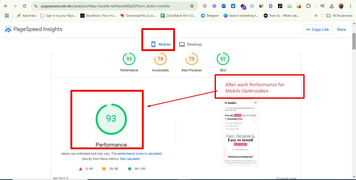 Of course, I can achieve much better score for Mobile. I have achieved 90+ for Mobile for many websites. But Mobile score depends on many factors like different types of coding scripts and the functionality of website. So please send me the URL to analyze website completely before placing order.
