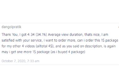 For 1$ you will receive 180 views. Please read my customer's feedback and decide to order.